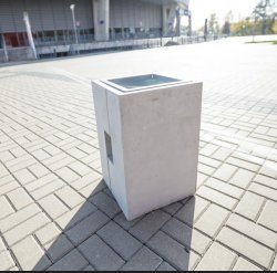 kosz z betomu architektonicznego poj. 40 l kod. 061 Wymiary: Wysokość : 61 cm Wymiary : 45x45 cm Pojemność: 40l. Waga : ok. 180 kg Mate…